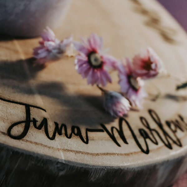 Et helt specielt tilbehør på spisebordet eller kommoden og et rigtigt blikfang. Med en masse kærlighed er hver træskive håndlavet af os i vores lille manufaktur i Danmark.